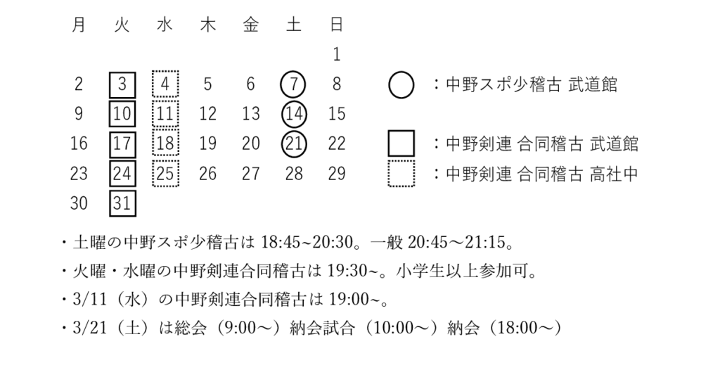 2026.3 稽古予定
